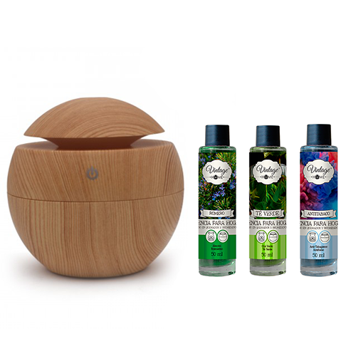 Compre o nosso pack especial VINTAGE nº1C com o nosso humidificador e três essências para humidificador e queimador: alecrim, chá verde, anti tabaco