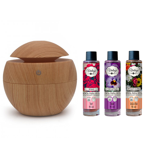 Compre o nosso pack especial VINTAGE nº3C com o nosso humidificador e três essências para humidificador e queimador: rosas, violetas, bouquet floral