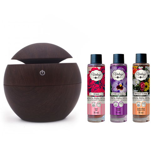 Compre o nosso pack especial VINTAGE nº3E com o nosso humidificador e três essências para humidificador e queimador: rosas, violetas, bouquet floral