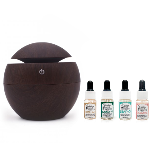 Compre o nosso pack especial VINTAGE nº2E com o nosso humidificador e quatro essências para humidificador: dollar, eucalipto, limpo, olympic