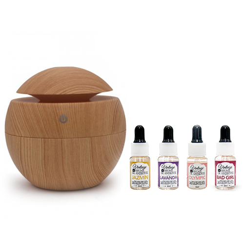Compre o nosso pack especial VINTAGE nº4C com o nosso humidificador e quatro essências para humidificador: jazmim, lavanda, olympic, bad girl