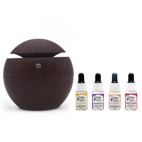 Compre o nosso pack especial VINTAGE nº4E com o nosso humidificador e quatro essências para humidificador: jazmim, lavanda, olympic, bad girl